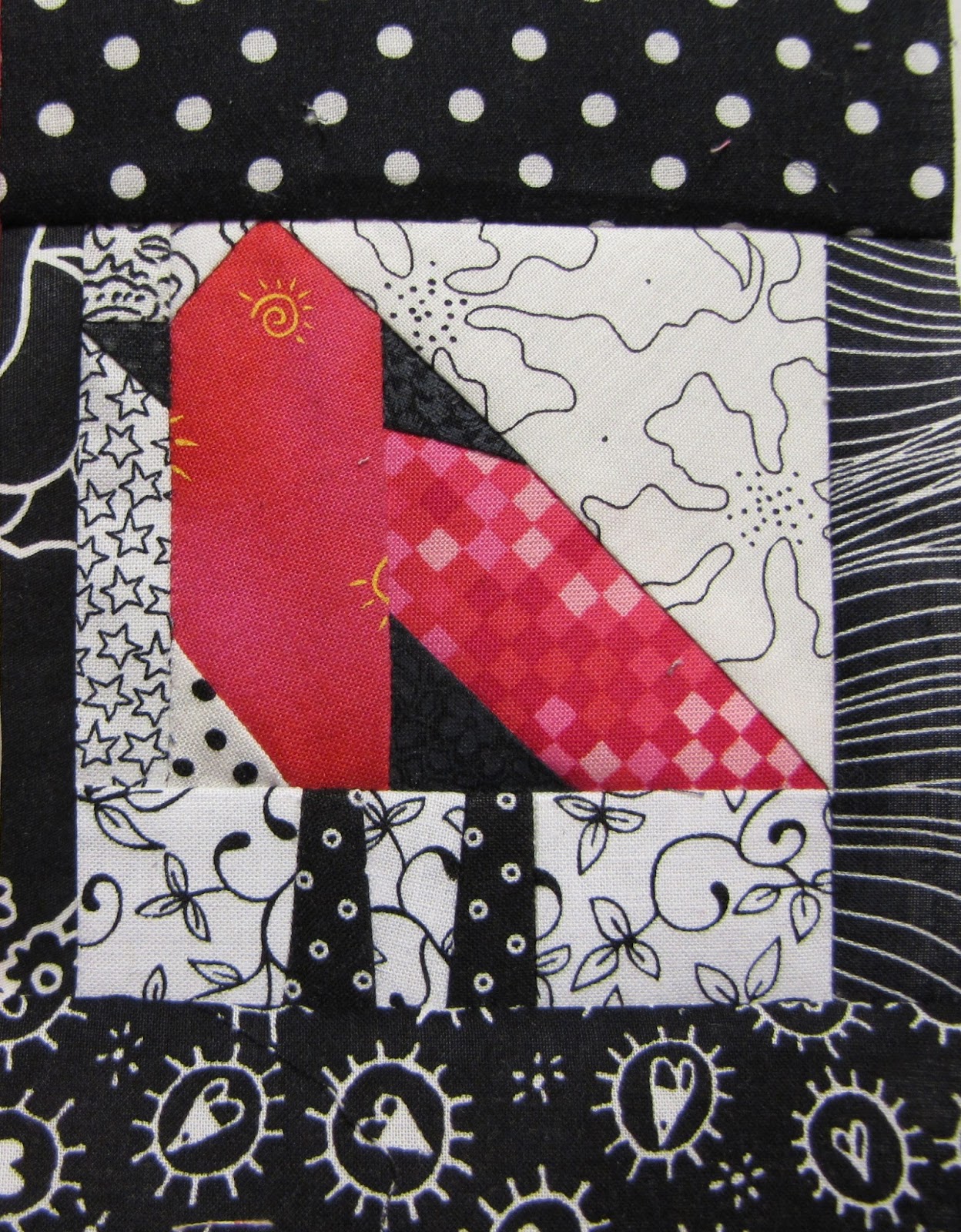 fabrics from my black/white and pink fabric stash (especially dots and novelty